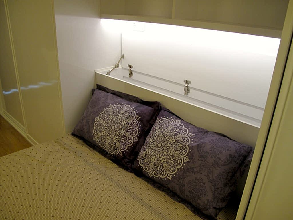 Katlanan karyola mekana büyük avantajlar sağlıyor.Başucundaki sandık yorgan yastık depolama için tasarlandı.Kapak üzeri komodin olarak kullanılabilir.gizli led aydınlatma gece lambası ve dekoratif bir görüntü imkanı sunuyor.