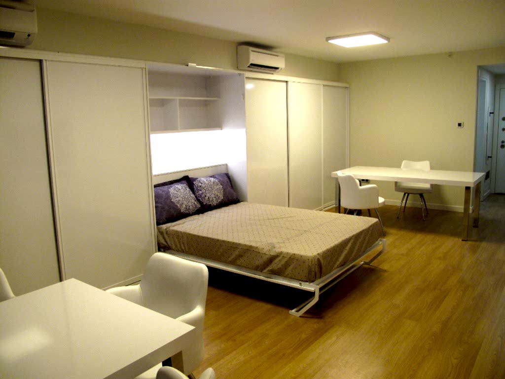 Karyola kapandığında yatak oadası görüntüsü tamamen kayboluyor.çalışma odasına dönüşüyor.Rahatlıkla toplantılar müşteri ağırlamak için uygun bir ofise dönüşüyor.